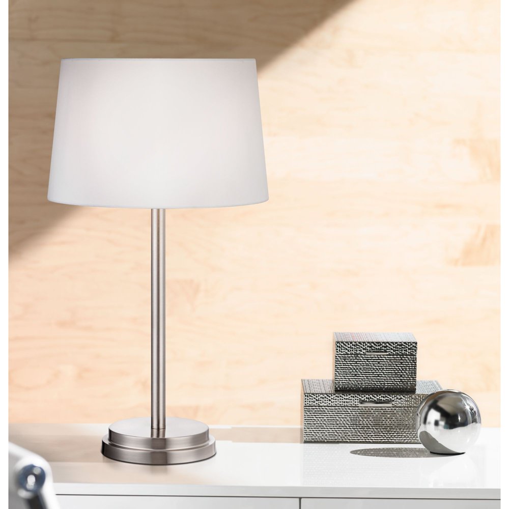 Brushed Steel Finish Moderne Table Lamp : Modern Table Lamp Set with White Shade in Glass Finish ... : This modern table lamp uses a 100 watt max.. Free shipping on orders of $35+ and save 5% every day with your target redcard. Art deco brushed aluminum and clear glass table lamp, up light attributed to russel wright. Antique silver finish table lamp white fabric shade new. Also available in other finishes. Add this stylish brushed steel table lamp to your decor as a contemporary accent piece.